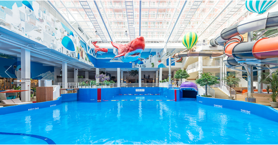워터파크, 실내 수영장, 키즈 카페, 볼링장 등 가족 단위로 즐길 수 있는 시설이 많습니다. 합리적인 가격에 다양한 액티비티를 즐길 수 있어, 주말이나 성수기에는 사람이 많아 다소 붐빈다는 의견이 있습니다.